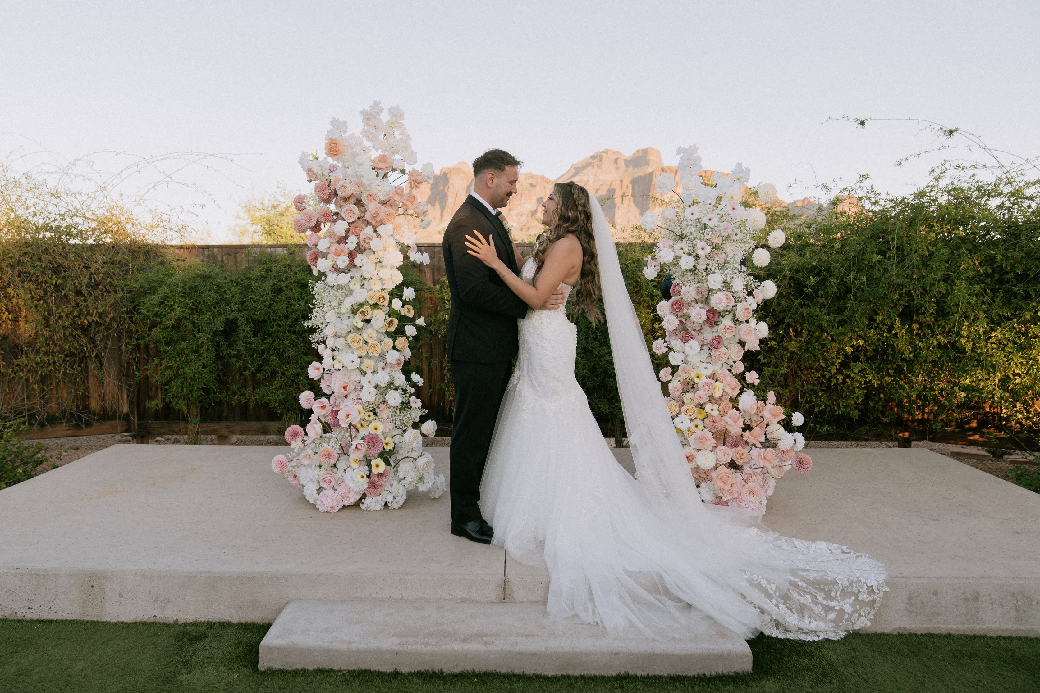 All of our floral arrangements, Arches and Backdrops are the most current trending designs! Rather you would prefer mostly beautiful statement flowers or a more organic, earthy arrangement with more greenery, we have the style for you! Each of our arrangements are designed with a light and airy feel! If you are not finding just the right colors, please reach out, we can always add in fresh florals in the colors of your choice!