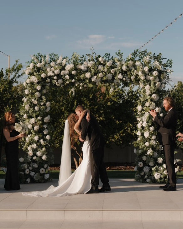 Kristie has amazing taste in wedding florals and all of her pieces are stunning! I am amazed at how professional she is, not to mention she is an incredible human as well. She was so dedicated to making my wedding vision come to life and her florals exceeded my expectations! Renting an artificial floral arch from Petal Kissed was so much more affordable than buying a fresh arch and was every bit as stunning! I am in awe at how realistic the flowers she uses are, most of them even felt like the real thing. I highly recommend her to any brides to be. She is the best in the business and you will not be disappointed!"