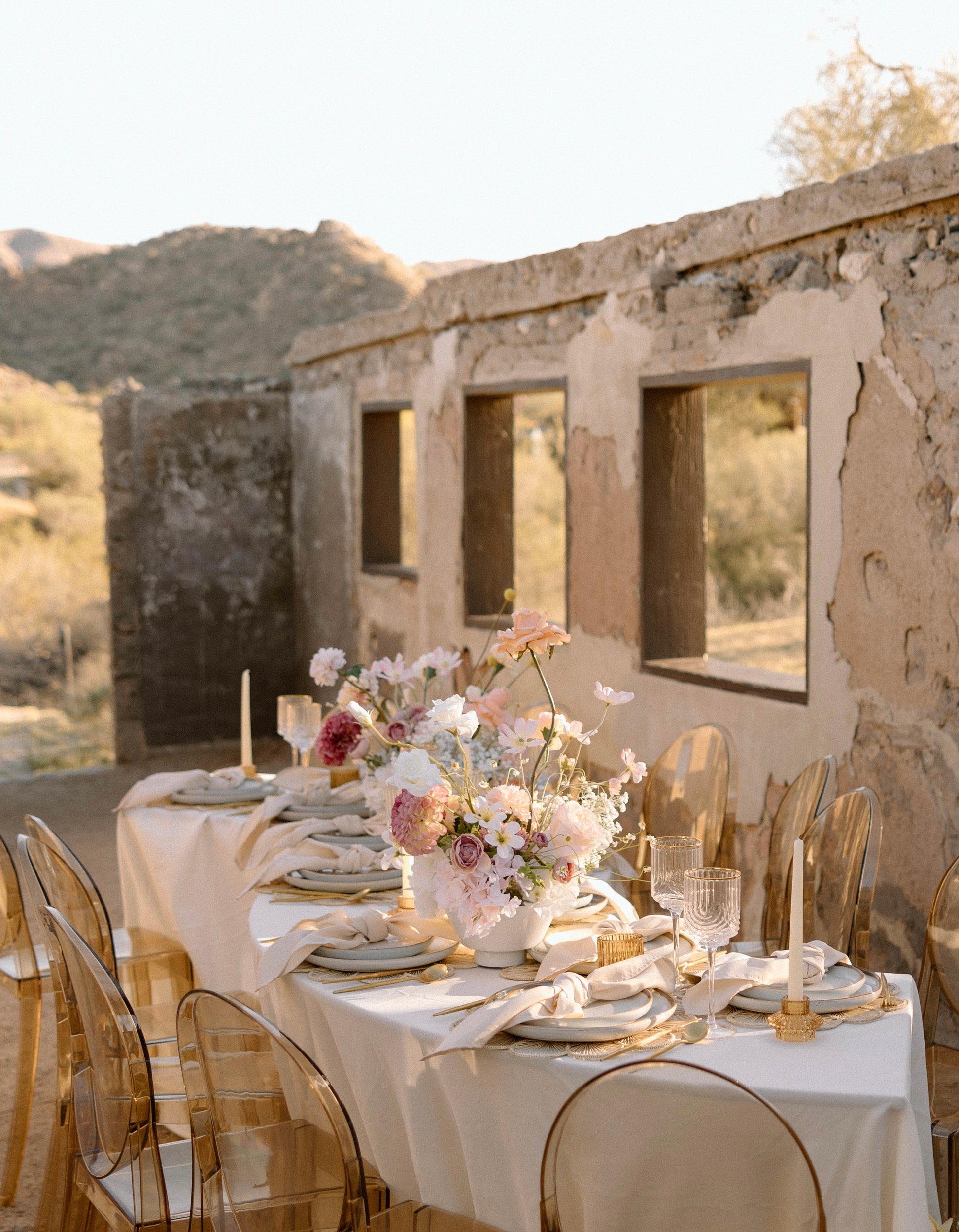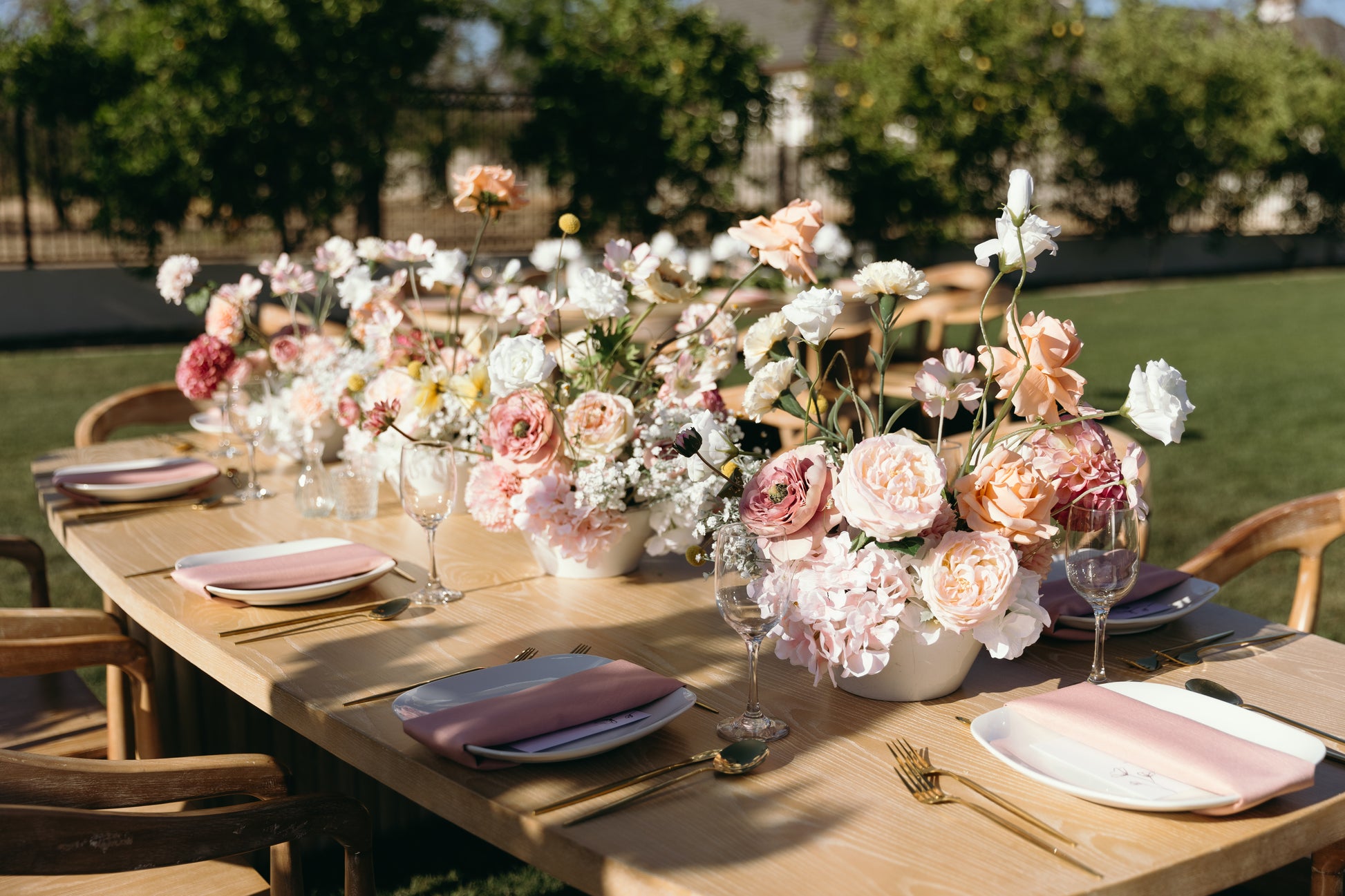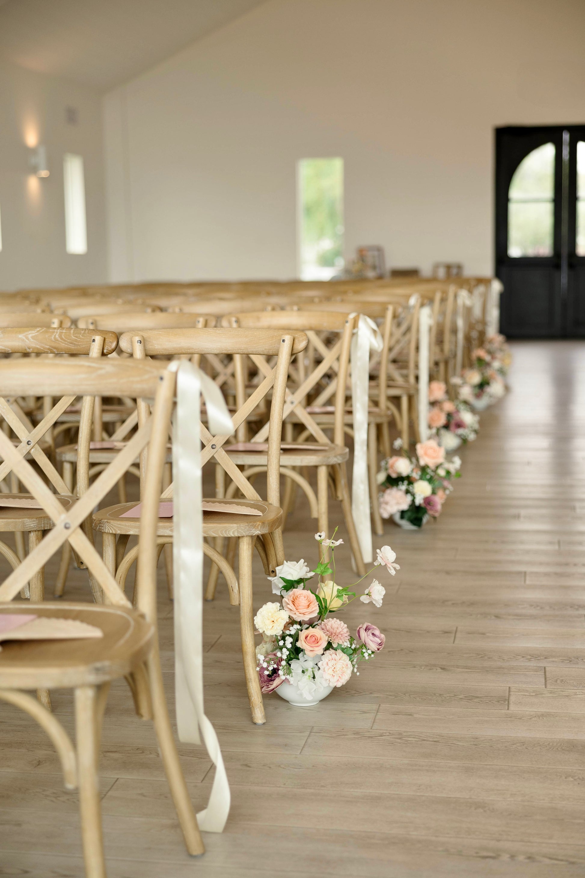These beautiful centerpieces match our lilah arch perfectly! They come in a set of 12 and can be used for both Centerpieces and small aisle arrangements. They come in a set of 12 for $750. Our brides typically rent bud vases to feel in extra tables if more are needed.