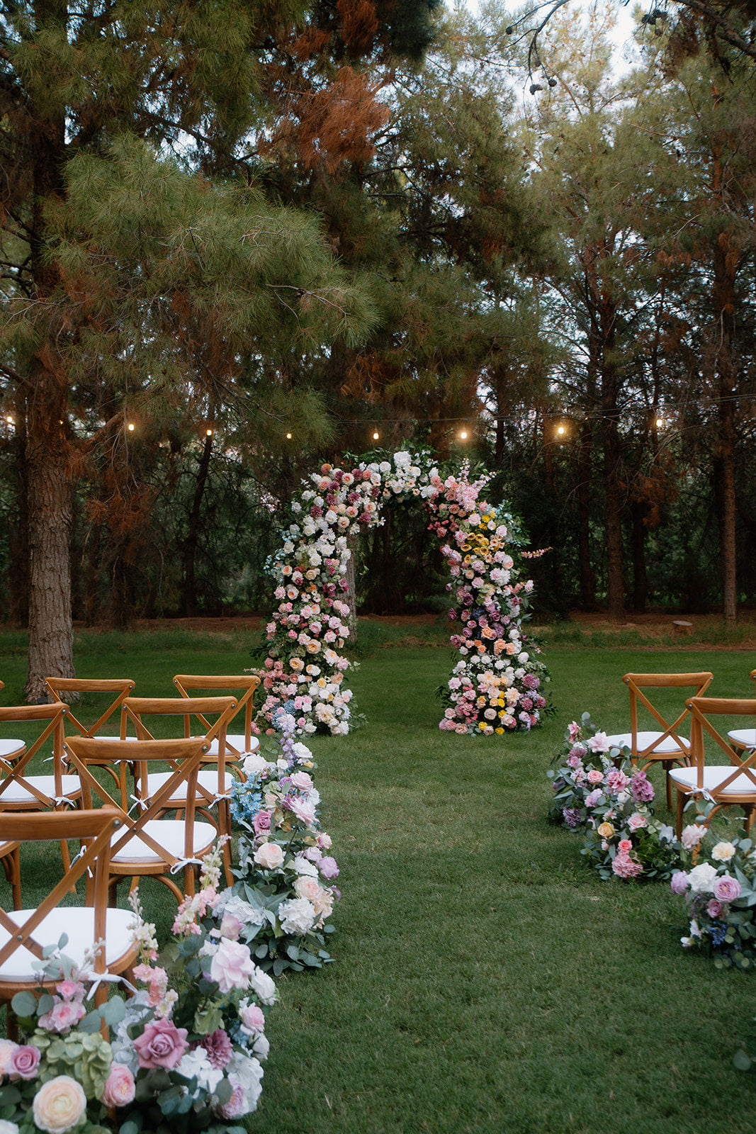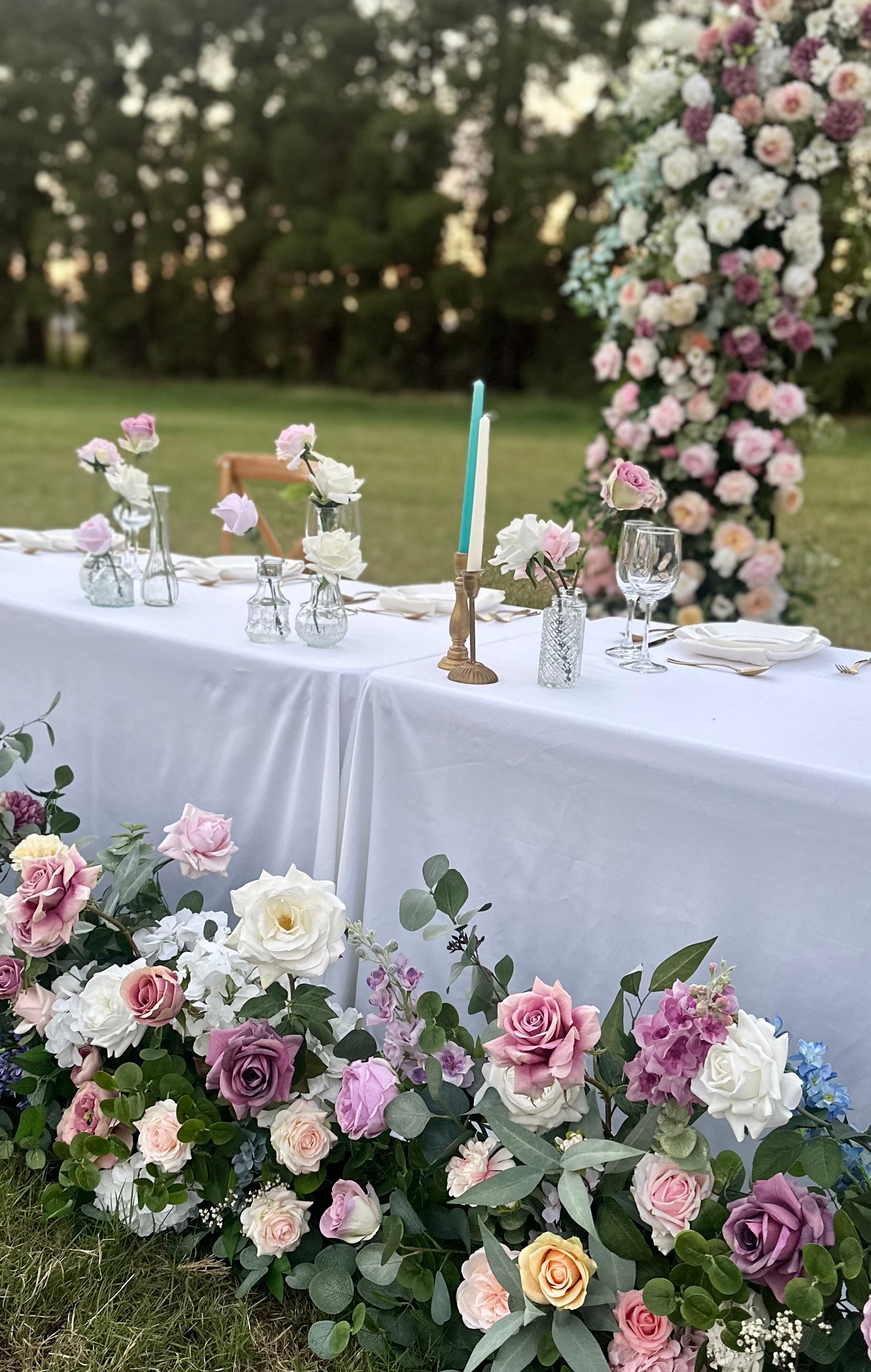 Our Beautiful Pastel Maylee Aisle Flowers are just what dreams are made of! with a touch of pinks, purples, yellows, and blue's, they add the perfect pops of soft color to your wedding! Set of 12