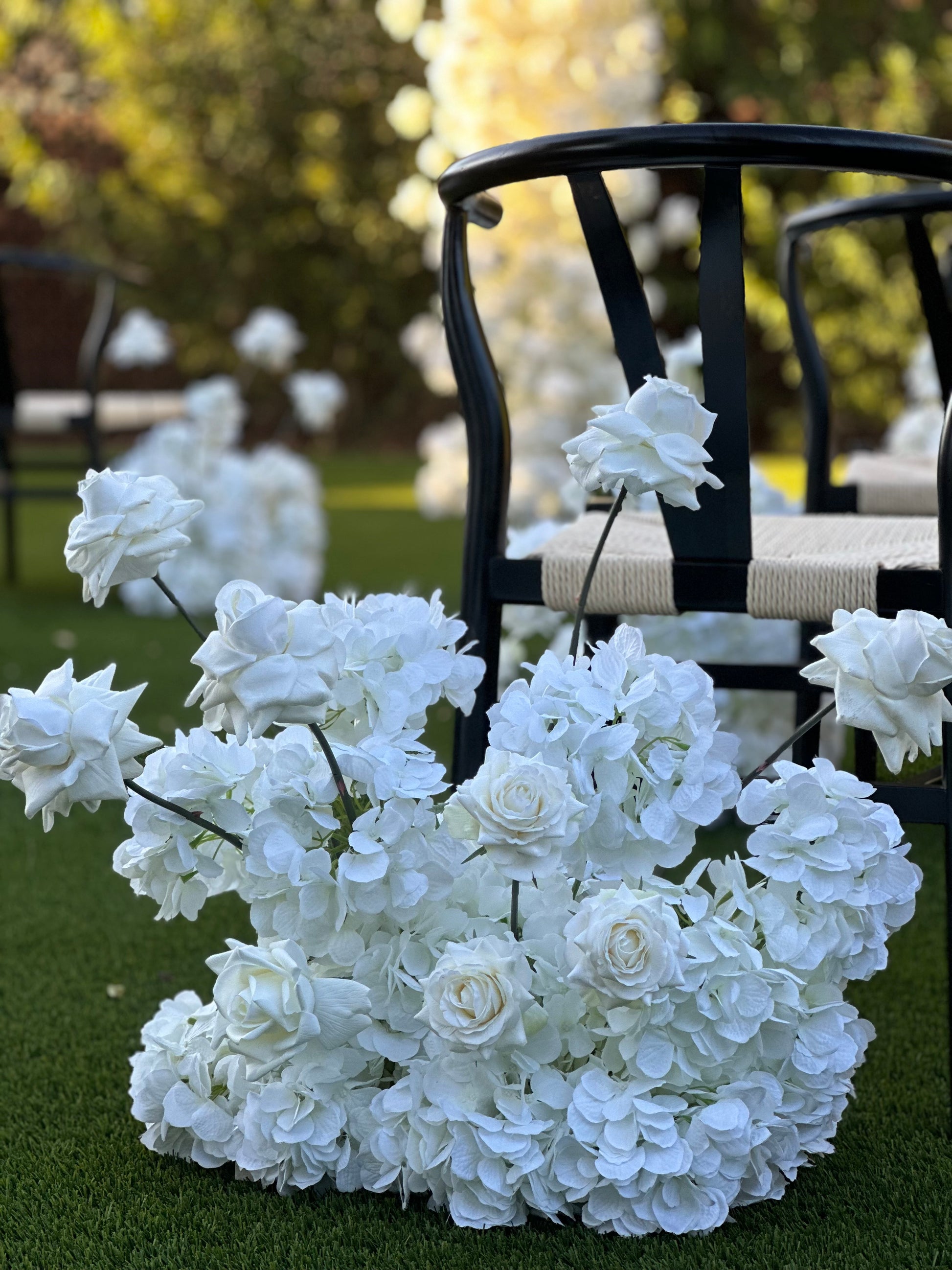 Our beautiful pearl ceremony flowers are the perfect match to our pearl wedding arch. All of our flowers can be repurposed from the wedding ceremony to the wedding reception. So many different uses for these stunning flowers!